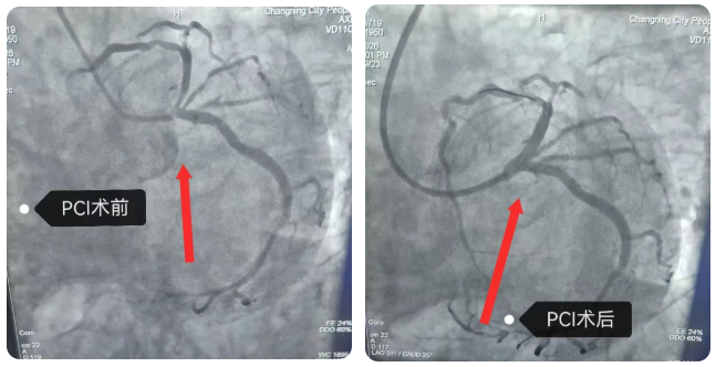 76岁的胡奶奶因持续胸痛被紧急送至我院急诊科,接诊医生快速完成床旁心电图,提示急性ST段抬高型心肌梗死。心血管内科会诊后,考虑可能是左主干病变,一键启动激活导管室,为胡奶奶进行急诊冠脉造影,结果显示左主干次全闭塞,这是急性冠脉事件中最凶险的类型。