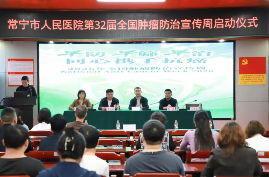 启动仪式上我院院长周武益致辞,作为区域内的癌症防治中心,医院始终坚持以患者为中心,着力完善肿瘤诊疗体系,提升专科诊疗能力。本次宣传周系列活动,既是落实国家癌症防控部署的具体行动,也是医院践行公益使命、服务百姓健康的重要举措,医院将以此次宣传周为新起点,持续提升肿瘤诊疗服务能力,常态化开展科普宣教、公益筛查、义诊咨询等活动,全力守护群众生命健康。