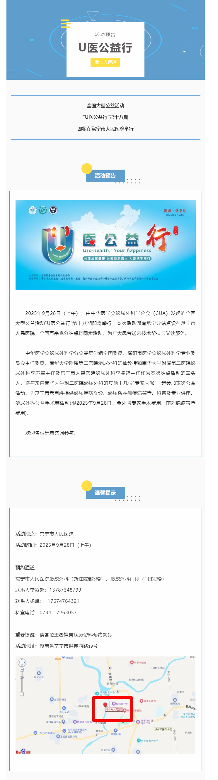【活动预告】9月28日,全国大型公益活动“U医公益行”第十八期在常宁市人民医院举行!