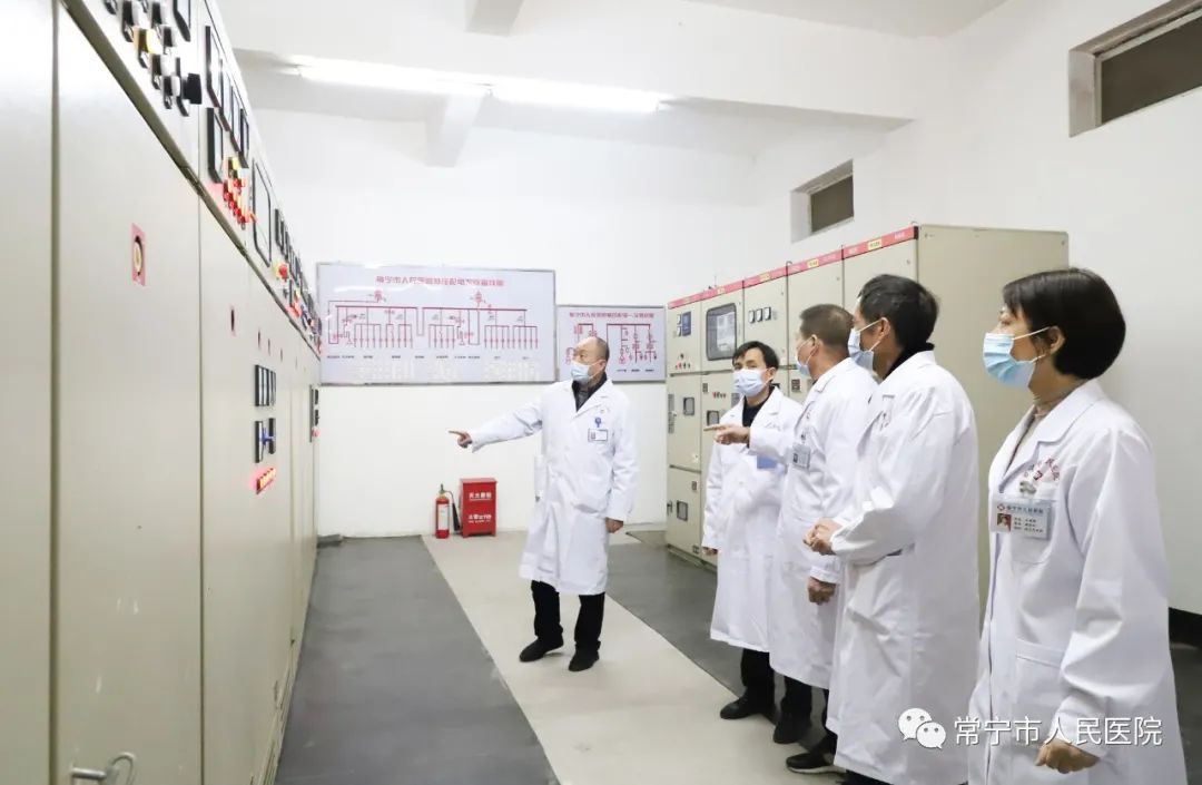 院领导来到II类消防控制室、微型消防站、电工房等重点区域,对供电供气设备、消防设施、器材等进行详细检查。