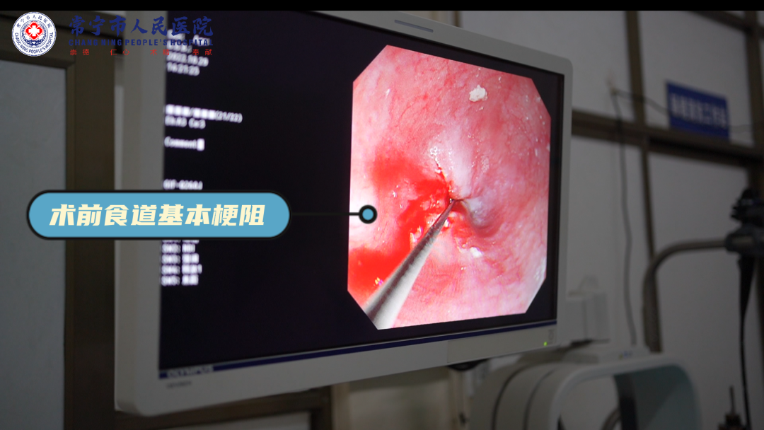 “我们进行胃镜检查时,发现患者距门齿25cm有结节型肿物,距门齿30cm处的管腔非常狭窄,腔道比针尖还细小,不仅内镜无法探入,连水都很难正常通过。”胃肠镜室医师李亮解释。患者被诊断为食管癌、食管中段狭窄,必须立即进行手术治疗,解决无法进食的问题。