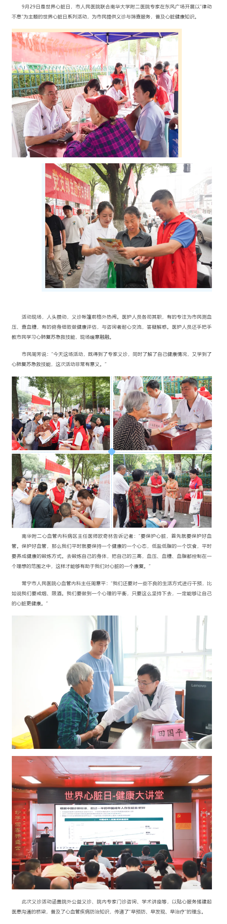 【综合新闻】让生命“律动不息” 市人民医院开展世界心脏日公益活动