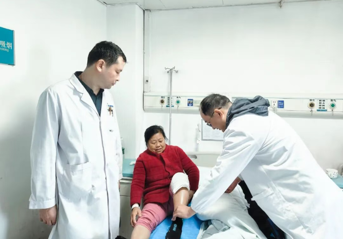 手术中,骨外科手术团队操作精准,仅通过一个微小切口便完成了病变间室的置换。术后第二天,刘阿姨在医护人员指导下行走,她惊喜的说:“我的膝盖不疼了,腿也直了,感觉就像换了个新关节一样!”