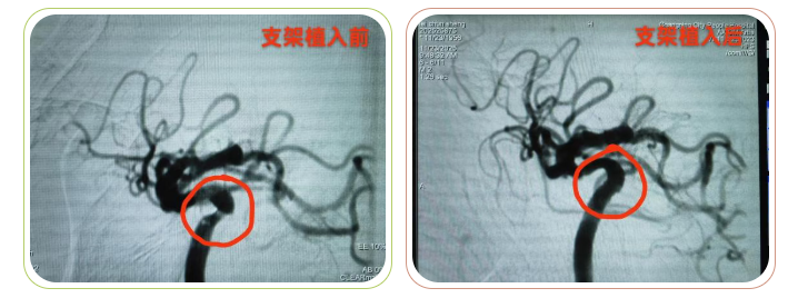 针对雷爷爷的病情,神经内科介入团队迅速制定个性化微创介入治疗方案。手术中,通过股动脉穿刺,将导管精准送至血管狭窄段,植入匹配规格的颅内动脉药物洗脱支架一枚,稳稳撑起血管壁,恢复脑部血流通畅。整个手术创伤小、耗时约40分钟。