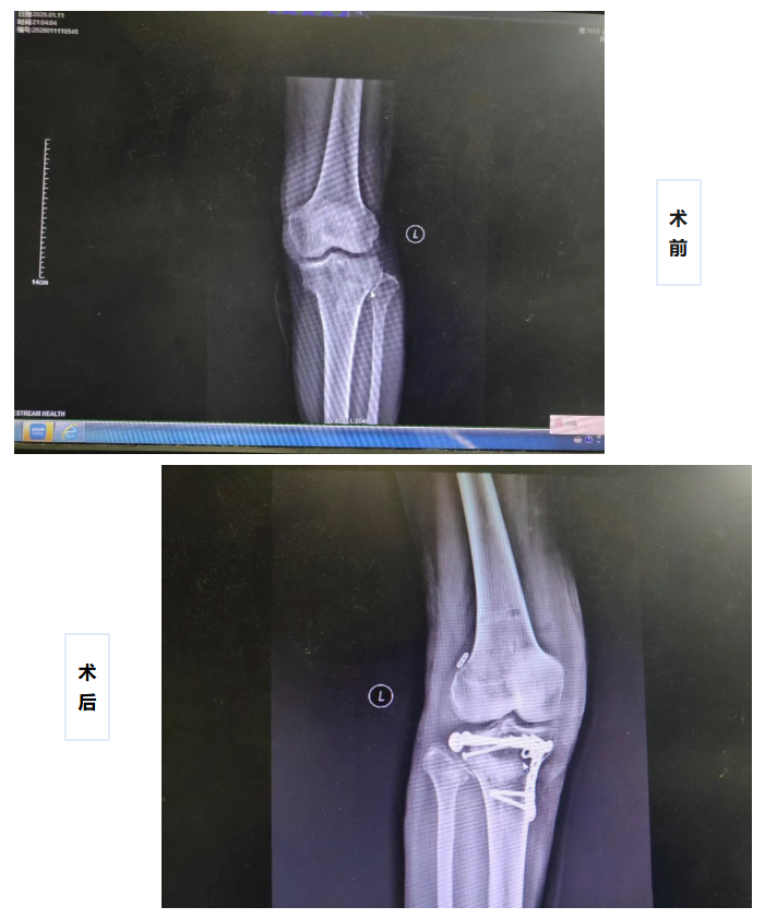 手术中,骨外科手术团队凭借精湛的关节内复位技术,将V型骨折块精确复位、内固定,重建平整的关节面;随后在已经稳定的骨隧道基础上,完成前交叉韧带的取腱、编织与植入固定。术后患者恢复良好,已开始功能康复锻炼。