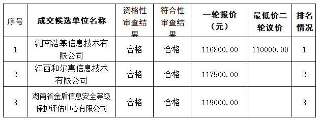 2025年度等保三级测评项目竞争性谈判采购于2025年10月23日结束,现将成交结果公告如下: